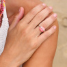 Available in four colors, it is distinguished by its stone-effect resin cabochon, encircled by a partially open ring set with precious rhinestones.
