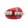 Available in four colors, it is distinguished by its stone-effect resin cabochon, encircled by a partially open ring set with precious rhinestones.