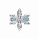 Cet hiver, vous allez raffoler de cette petite merveille précieuse! Cette bague en laiton argenté plaqué au palladium, 0,3 microns, à la particularité d'être amovible et s'adapte à toutes les tailles. Elle est décorée de petites billes argentées et de palmettes centrales qui rappellent les bijoux anciens de l'époque italienne. Elle est décorée de points d'émail turquoise et pavée de strass de couleur turquoise, blanc effet diamant et violet améthyste.