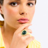 Dans sa version noire, sa pierre centrale se pare d’un vert très foncé et intense, entourée de perles aux tons amazonite pour un contraste doux et délicat.