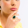 En son centre, elle dévoile une pierre de forme goutte, cerclée de véritables perles minutieusement serties, qui apportent à l’ensemble un relief délicat et sophistiqué.
