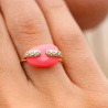 Déclinée en quatre coloris, elle se distingue par son cabochon en résine effet pierre, encerclé d’une bague partiellement ouverte sertie de strass aux reflets précieux.