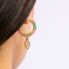 SADYA est une adorable mini-créole montée sur tige, à porter tout l’été ! Dorée à l’or fin 14 carats, elle dévoile un minutieux tissage de perles de rocaille autour de l’anneau, sublimé par une petite palmette dorée qui lui confère un caractère précieux. Déclinée en deux versions, sa déclinaison multicolore associe des perles oranges, turquoise, dorées et roses.