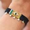 • Bracelet réglable en polyester, lurex et laiton doré à l'or fin 14 carats 0,05 microns