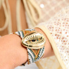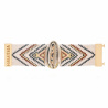 Puisant son inspiration dans l’art navajo que l’on chérit tant, APASHE déploie un tressage de perles de part et d’autre d’un cauri doré aux proportions cossues et magistrales.