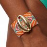 Puisant son inspiration dans l’art navajo que l’on chérit tant, APASHE déploie un tressage de perles de part et d’autre d’un cauri doré aux proportions cossues et magistrales.