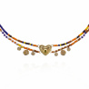 Au centre, un pendentif en forme de cœur finement travaillé, plaqué or 14 carats et illuminé d’un strass brillant, apporte une touche précieuse et romantique. Dans sa version jaune, MYLOVE s’habille de nuances ocre, moutarde, jaunes, bleu Klein et chocolat, rehaussées d’un cristal vert péridot captivant.