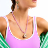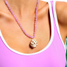 • Collier perlé et fermoir en acier inoxydable et laiton doré à l'or fin 14 carats 0,05 microns