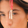 Dans sa version corail, les perles adoptent un délicat ton corail rosé, tandis que le pompon se pare de perles rose clair pour une allure douce et estivale.