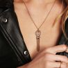 Vous aussi, succombez au charme raffiné de ce collier mi-long doré à l'or fin 14 carats! Il se compose de deux fers à cheval qui vous apporteront la chance et la protection. Ils sont entièrement pavés de strass effet diamant et de pierres en pyrite. Ce collier se prolonge d'un délicat pompon de chaînes, pour un look précieux et ethnique chic.